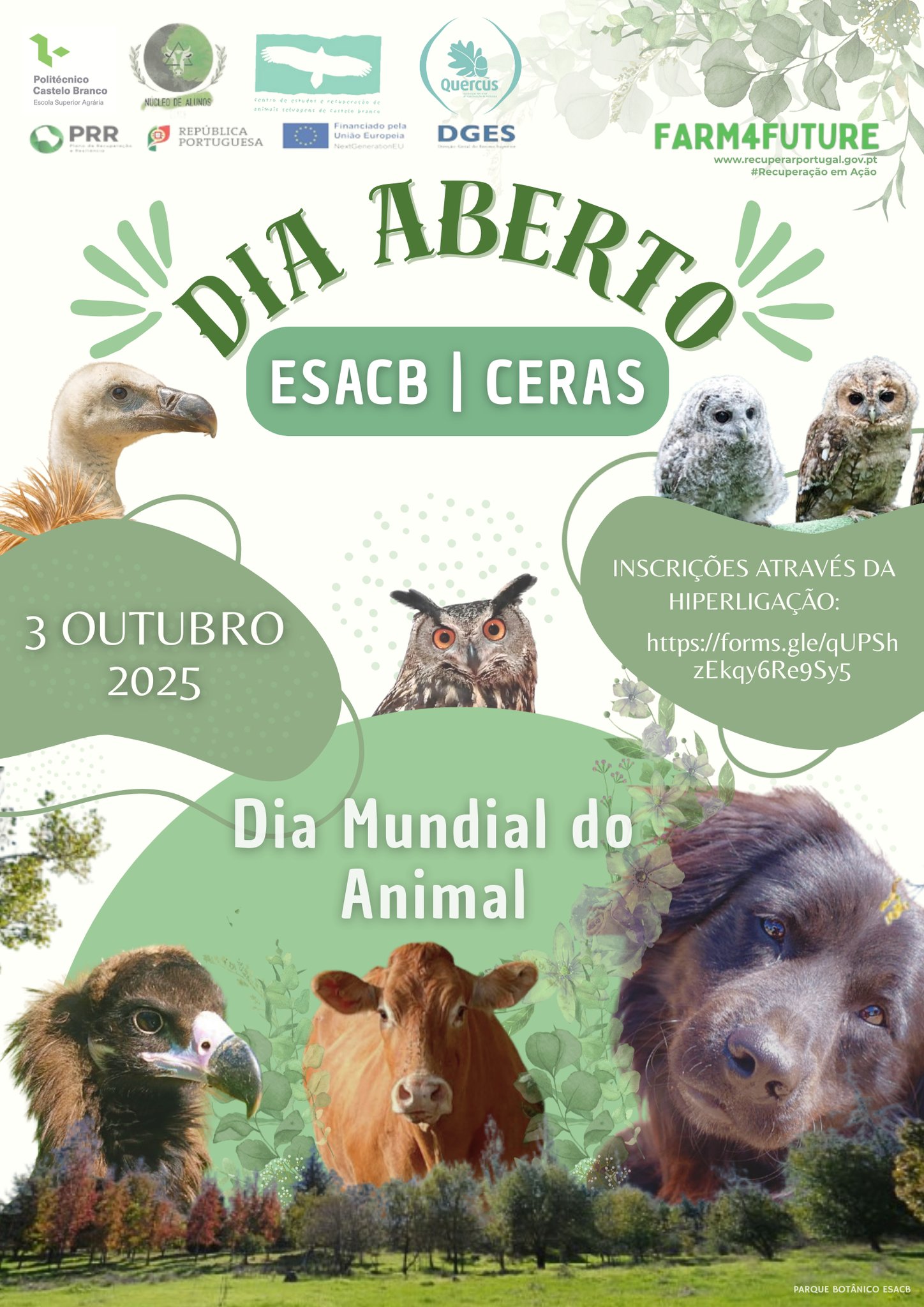 A Escola Superior Agrária de Castelo Branco (ESACB) convida toda a comunidade a participar no Dia Aberto, no âmbito das comemorações do Dia Mundial do Animal, que terá lugar no dia 3 de outubro, entre as 09h00 e as 17h30.