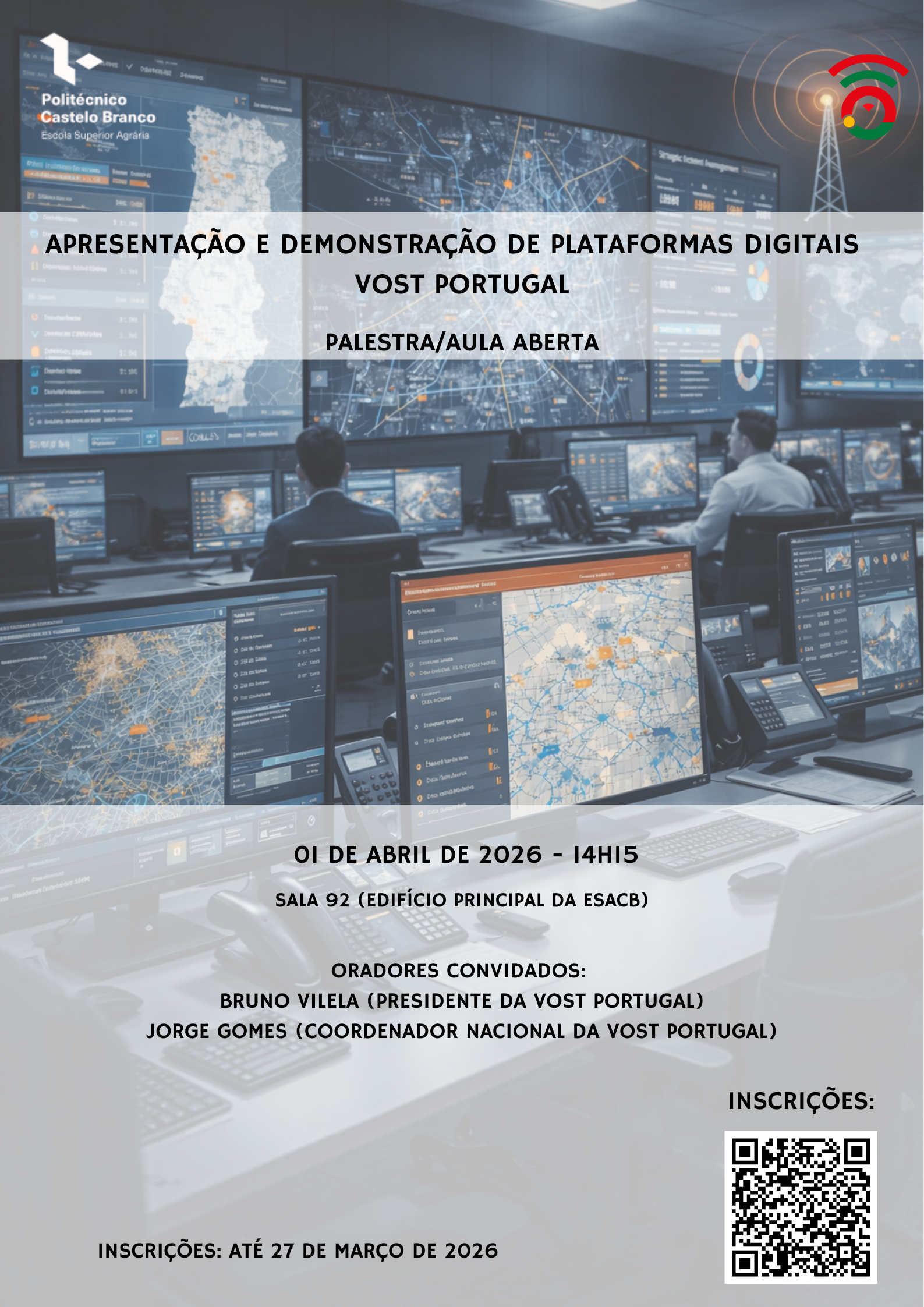 Sessão dedicada à apresentação técnica e operacional das ferramentas digitais utilizadas pela VOST Portugal no apoio à gestão de emergências, comunicação em crise e monitorização de informação em tempo real.