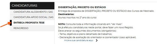 Nota: No momento da entrega da Tese/Relatório tem que ter situação de propinas regularizada.